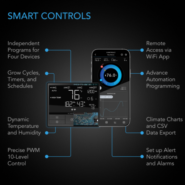- Use the digital controller to automate ventilation based on your grow’s specific needs.